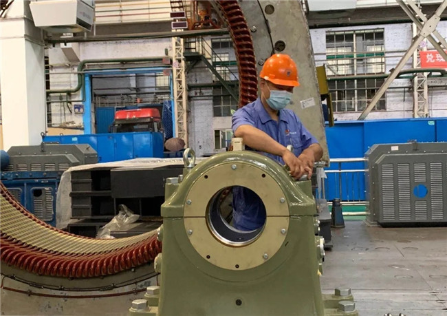 哈電集團(tuán)動(dòng)裝公司電機(jī)制造部黨員于海蛟正在進(jìn)行中信重工軸承座拆裝工序。