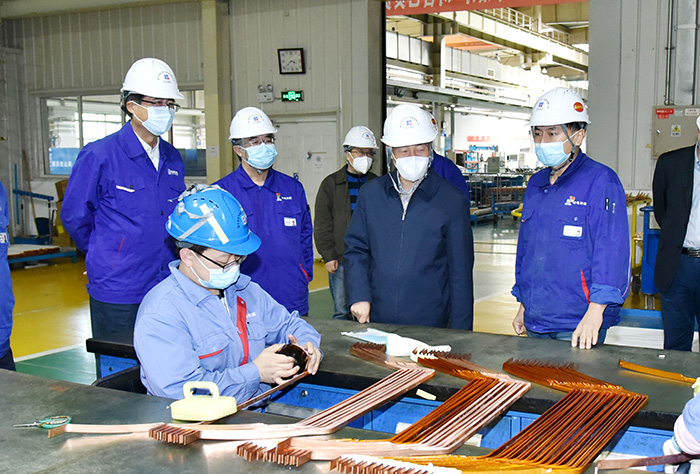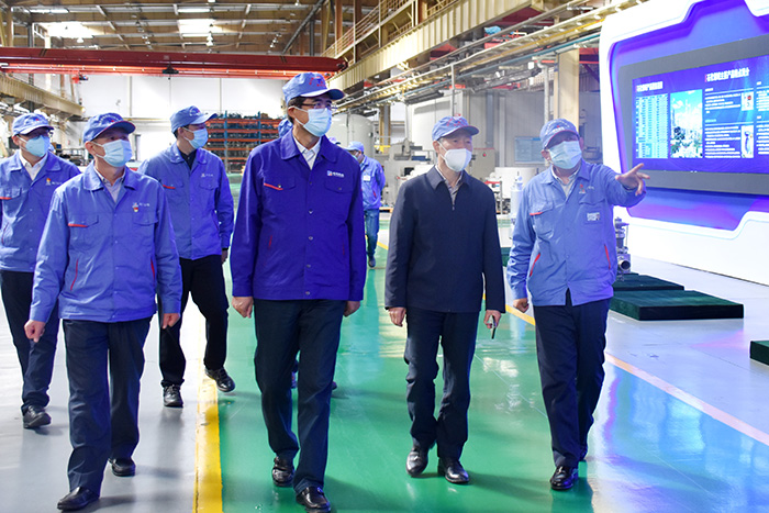 10月2日,哈電集團(tuán)董事長(zhǎng)、黨委書(shū)記斯?jié)煞?,黨委副書(shū)記、董事孫智勇一行前往動(dòng)裝公司、閥門(mén)公司,慰問(wèn)國(guó)慶假期期間堅(jiān)守生產(chǎn)一線的干部員工,檢查指導(dǎo)疫情防控工作,聽(tīng)取重點(diǎn)項(xiàng)目生產(chǎn)進(jìn)度的情況匯報(bào),并為節(jié)日加班員工送上節(jié)日祝福。