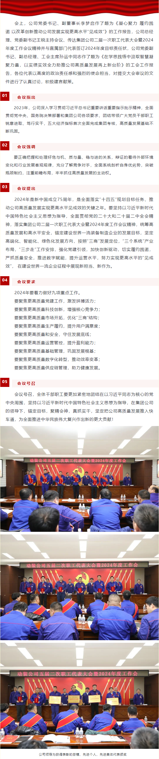 動裝公司第五屆二次職工代表大會暨2024年度工作會議勝利召開