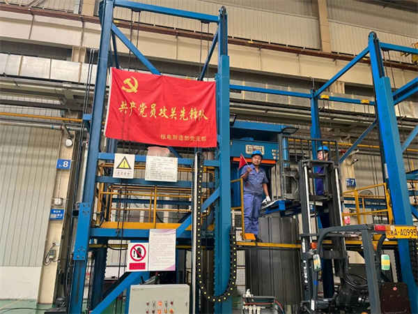核電制造部何西波正在進(jìn)行廉江CAP1000項(xiàng)目定子鐵心裝疊