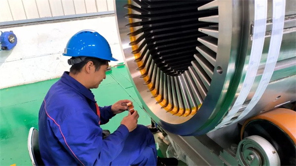 線圈制造部房廣雷正在進(jìn)行CAP1400定子下線前準(zhǔn)備