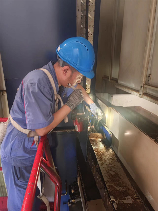 電機(jī)制造部李包陽(yáng)正在精銑電機(jī)鴿尾槽